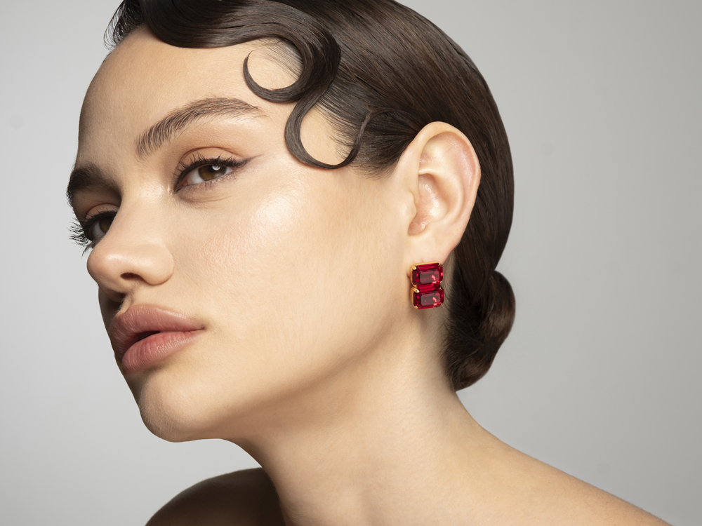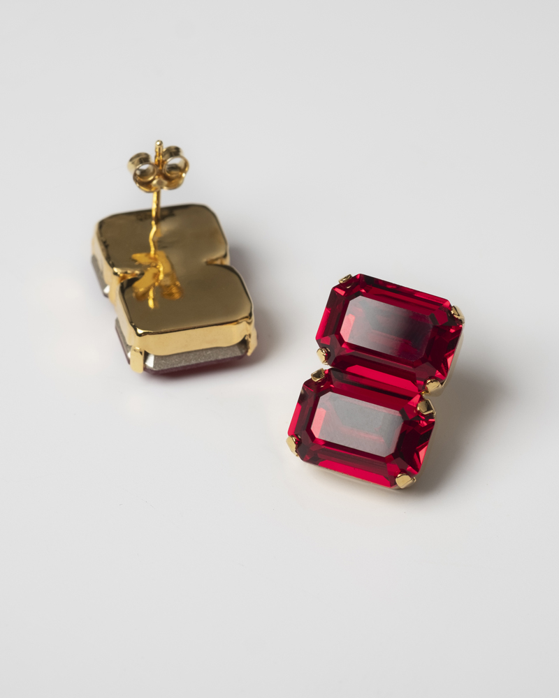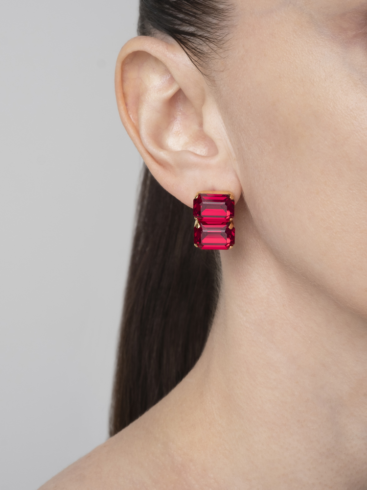 Серьги с кристаллами Swarovski глубокого красного оттенка.