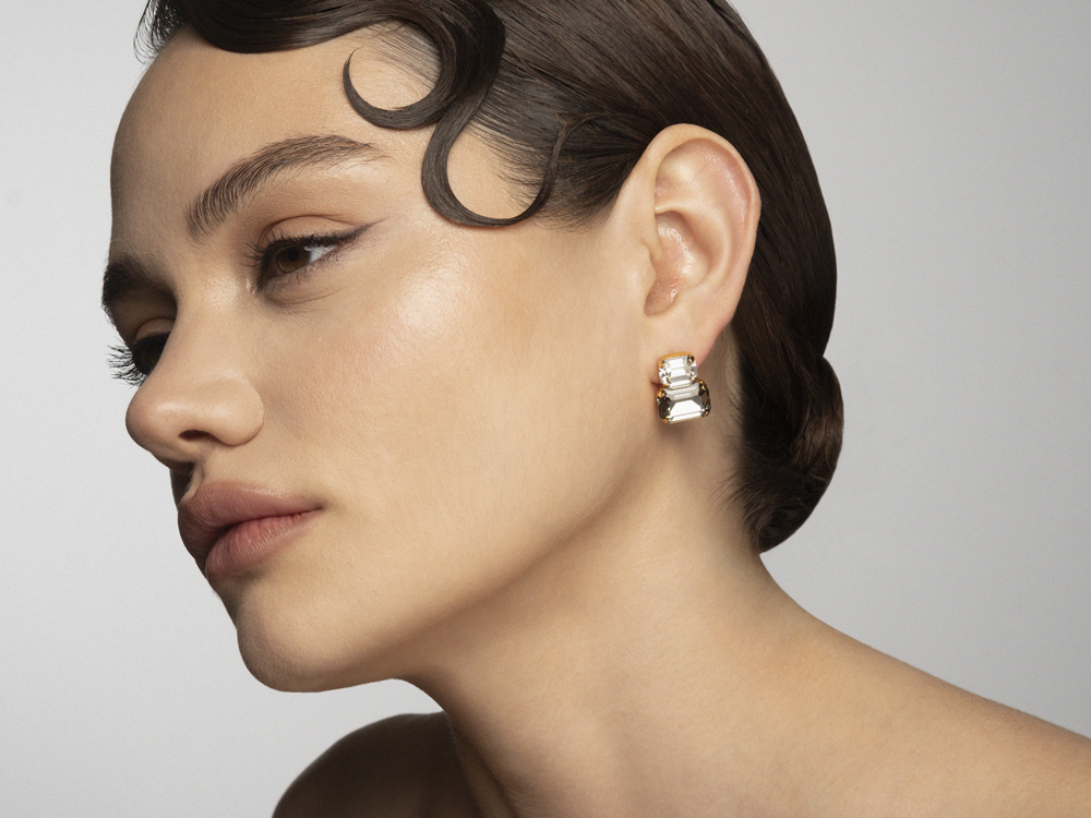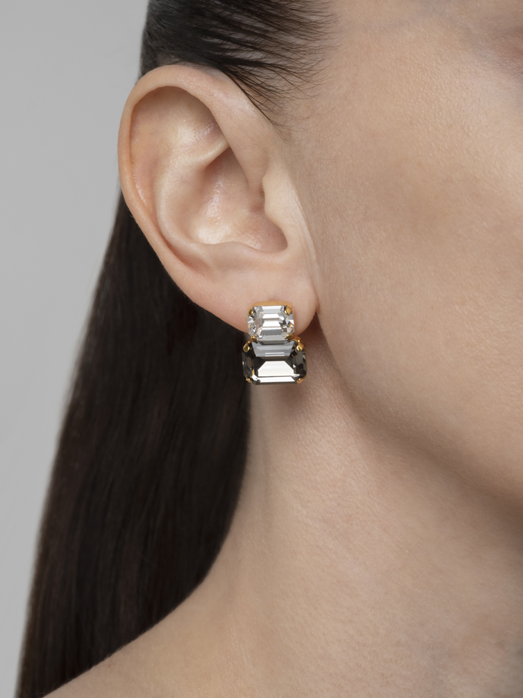 Серьги с кристаллами Swarovski в прозрачном и дымчатом оттенках.